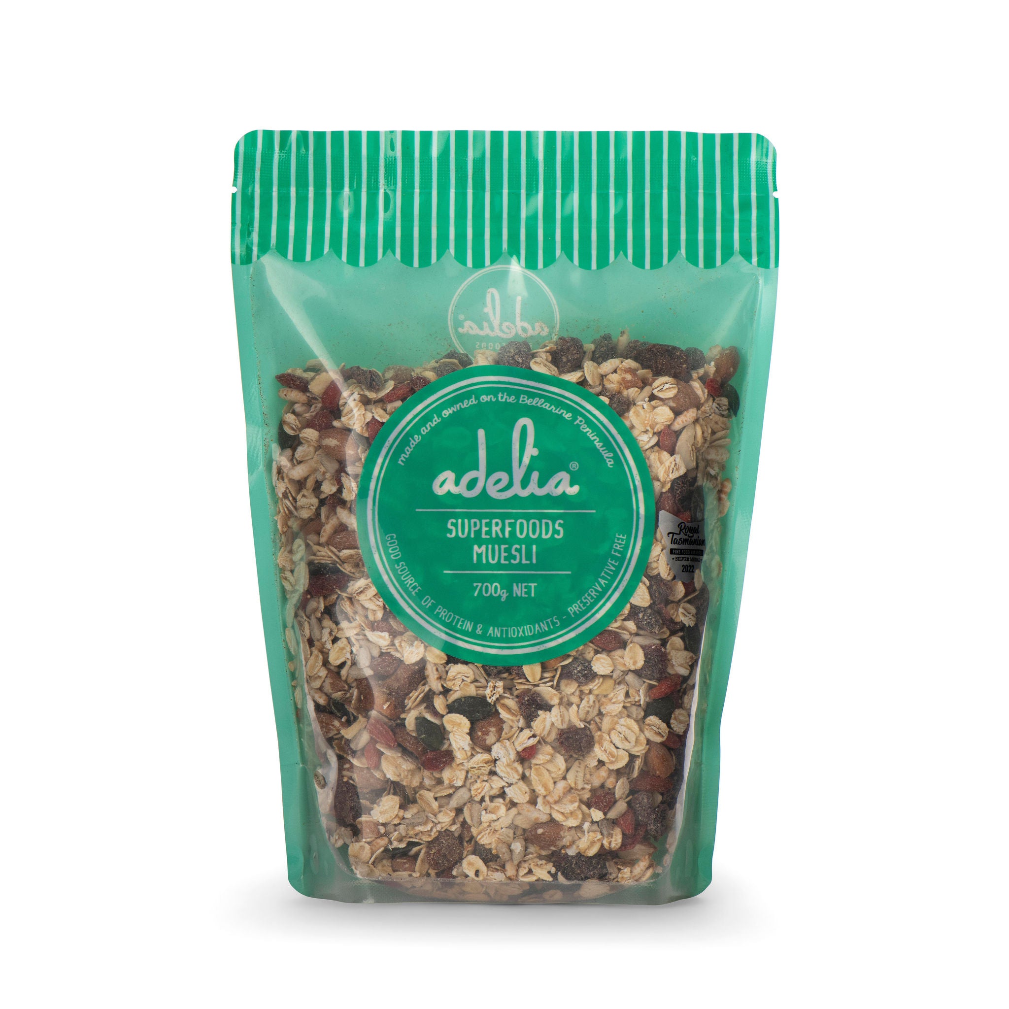 Introducing our Superfoods Muesli, a nutritious blend featuring organic incaberries, goji berries, amaranth, quinoa, chia seeds, and linseeds. Enjoy a delicious breakfast that nourishes your body with superfood goodness, providing sustained energy and promoting digestive health. Choose a muesli that's as beneficial as it is tasty!